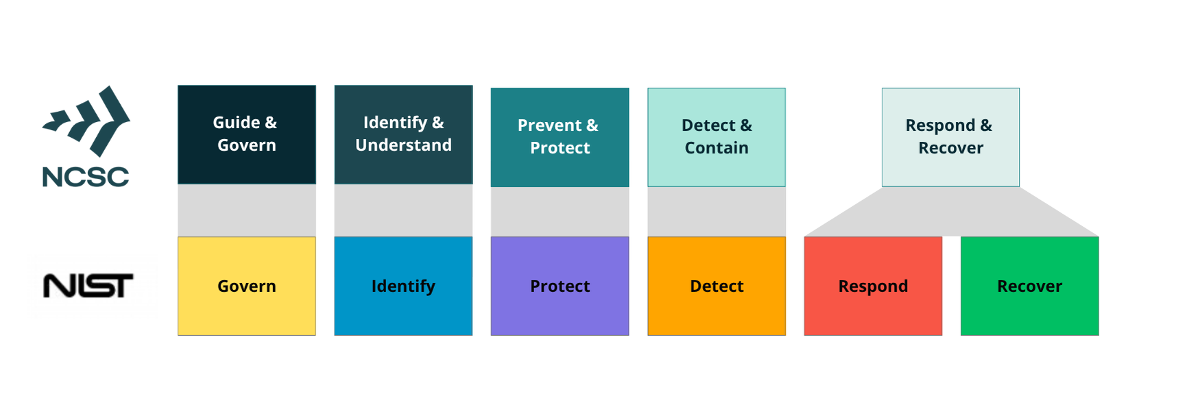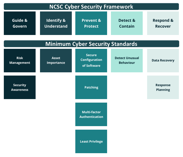NCSC-NZ’s Cyber Security Framework provides a basis for the development of the initial set of Standards with a simple visual mapping of Standards to the 5 top level Functions (Guide & Govern, Identify & Understand, Prevent & Protect, Detect & Contain, Respond & Recover):